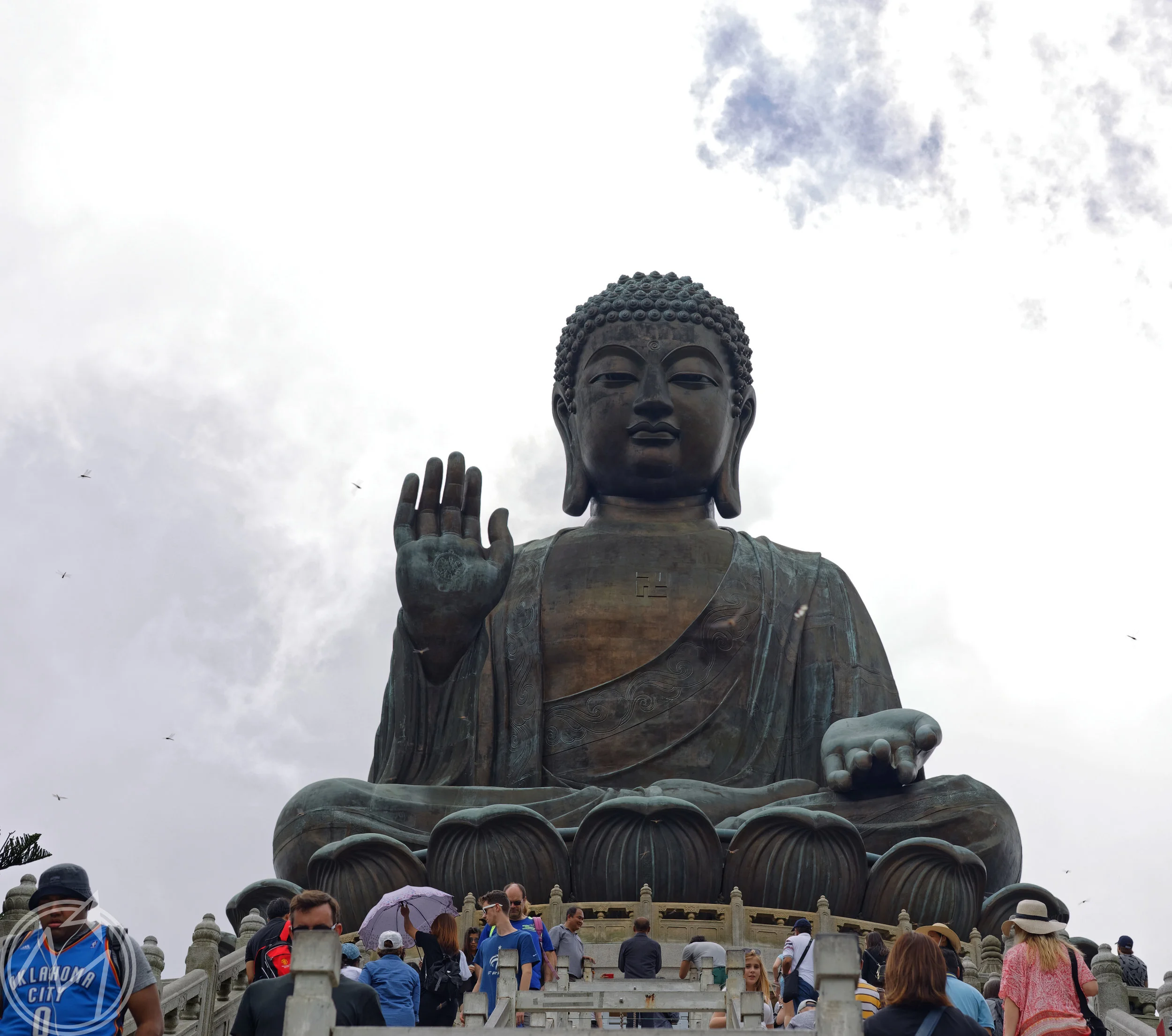 towering over the monastery is this gorgeous 112-foot bronze tian tan buddha. it is one of the five largest buddha statues in all of china and it. is. no. joke. the 268 stairs we had to climb + general humidity led to a very sweaty everything but was so worth it. buddha's raised right hand symbolizes the removal of all pain and affliction and the left hand is open in generosity. neither of us had studied buddhism in a long time so it was great to get re-educated, so to speak.