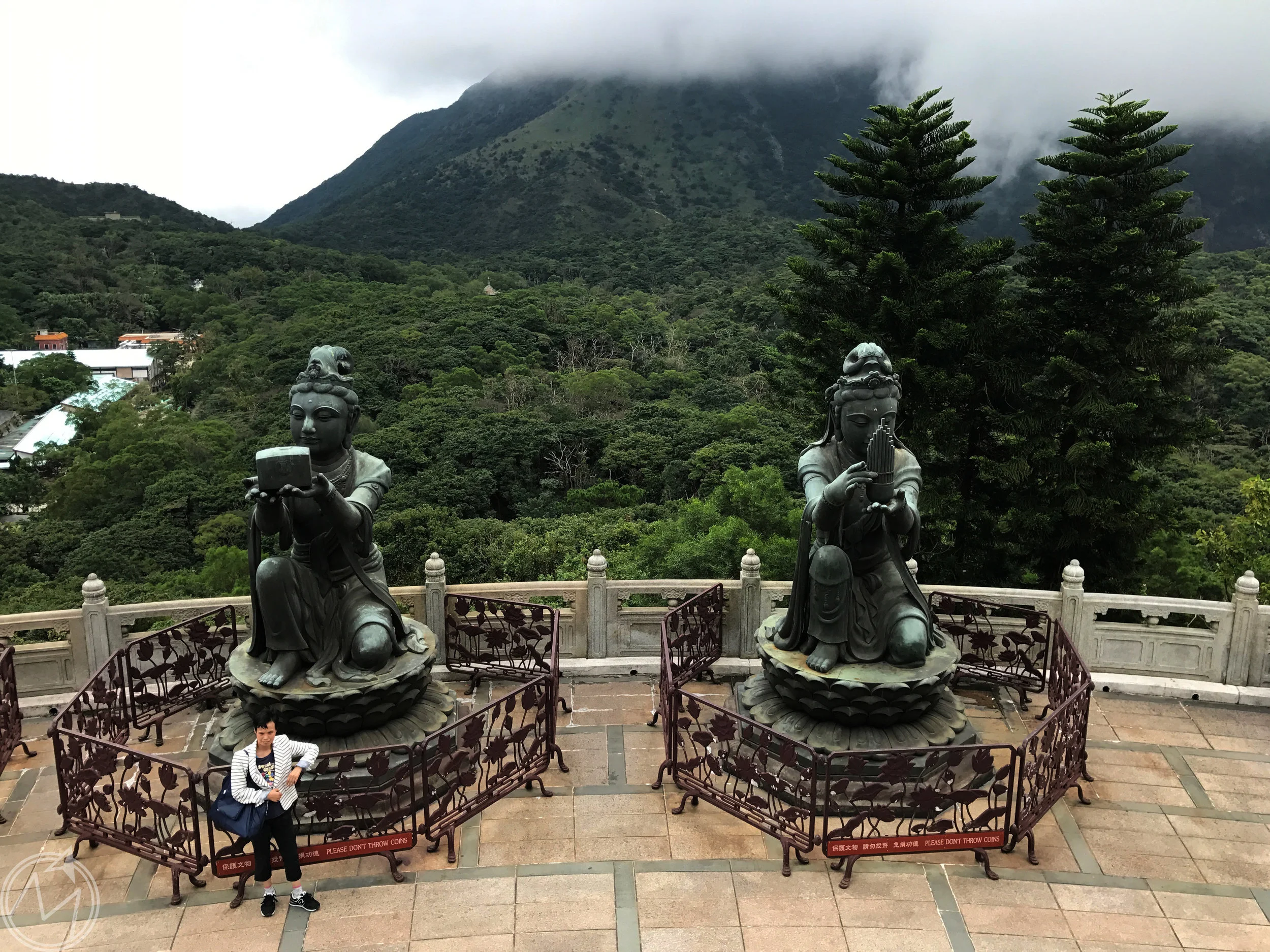 one day during our trip, we decided to get out of the hustle and bustle of the city and took the train over to the ngong ping cablecar. as someone who never thinks they're afraid of heights until they actually get up in the air, i loved/hated the ride on the car. but the views of lantau island, countless apartment buildings and even the hong kong airport (my plane-obsessed husband was in heaven) were simply incredible. just like when we took the peak tram to look out over all of hong kong, i got total sim city vibes overlooking the massive structures and having things like massive barges look so tiny on the water. perspective is crazy, man.